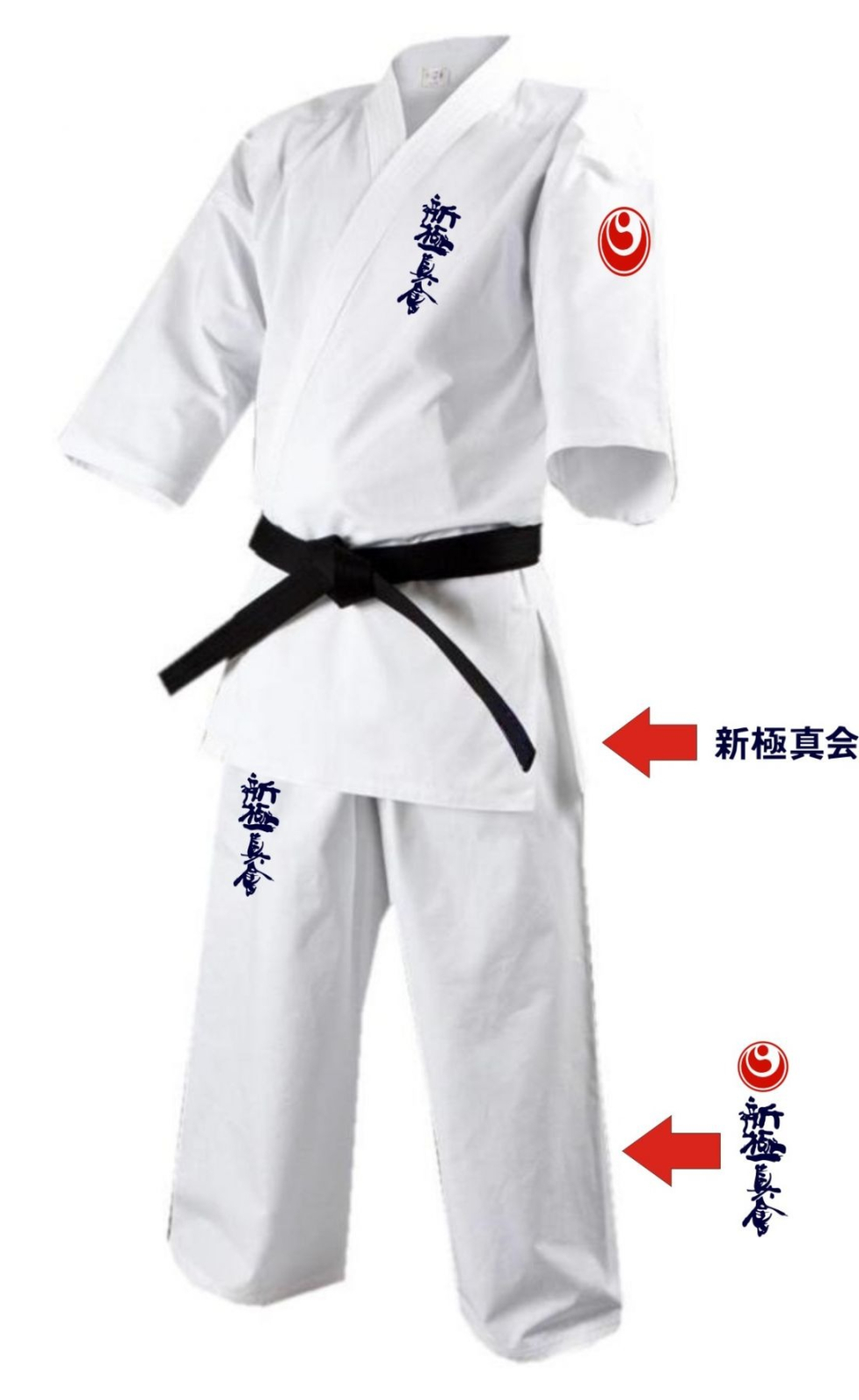 Kimono/DO Gi ShinKyokushin Karate cu nod la pantalon si 5 broderii . Croiala traditionala , comfortabila , material rezistent , Kanji brodat pe partea stanga a jachetei , bratul stang , spate si partea superioara din fata a pantalonului plus partea inferioara din spate .